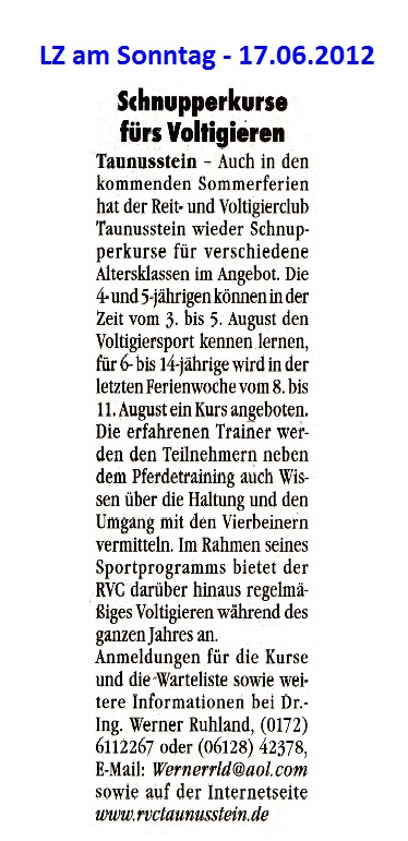 Presseberichte über die Ankündigung der Sommer-Schnupperkurse 2012
