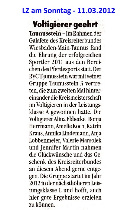 Presseberichte über die Ehrung von Taunusstein 3 durch den Kreisreiterbund Wiesbaden-Main-Taunus