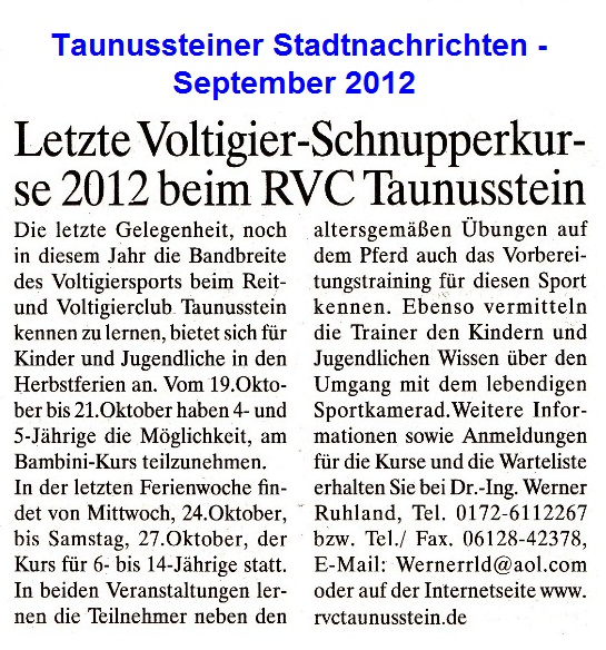 Presseberichte über die Ankündigung der Herbstschnupperkurse