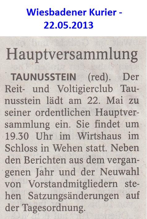 Presseberichte über die Ankündigung der Hauptversammlung des RVC