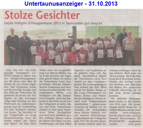 Presseberichte über die Herbst-Schnupperkurse