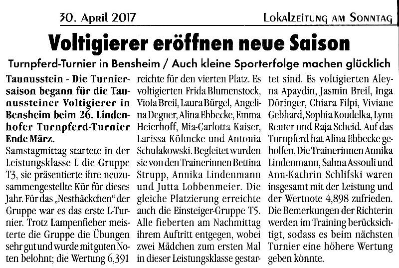 Presseberichte zum Lindenhofer Turnpferd-Turnier